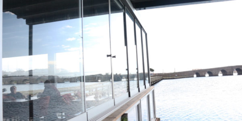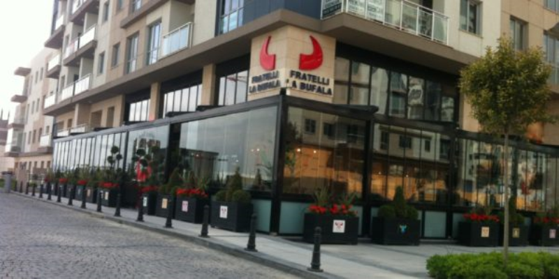 Kafe mağaza ve kış bahçeleriniz için katlanır cam sistem yerine tercih edebileceğiniz gayet şık ve kullanışlı sürgülü cam paneller; kolay kullanım ve sunum temelli mimari estetik yaklaşım.